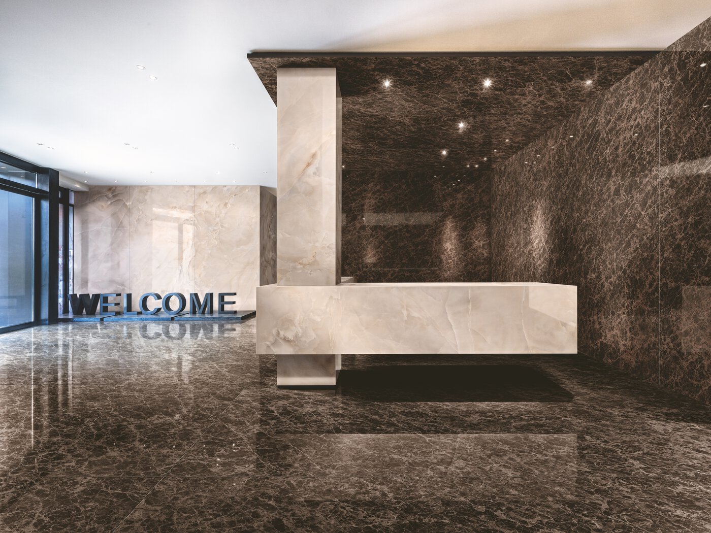 Ariostea Ar Uo Onice Pesca Dark Emperador Lu Shiny 300150 Amb18 Reception — ariostea-ar-uo-onice-pesca-dark-emperador-lu-shiny-300150-amb18-reception